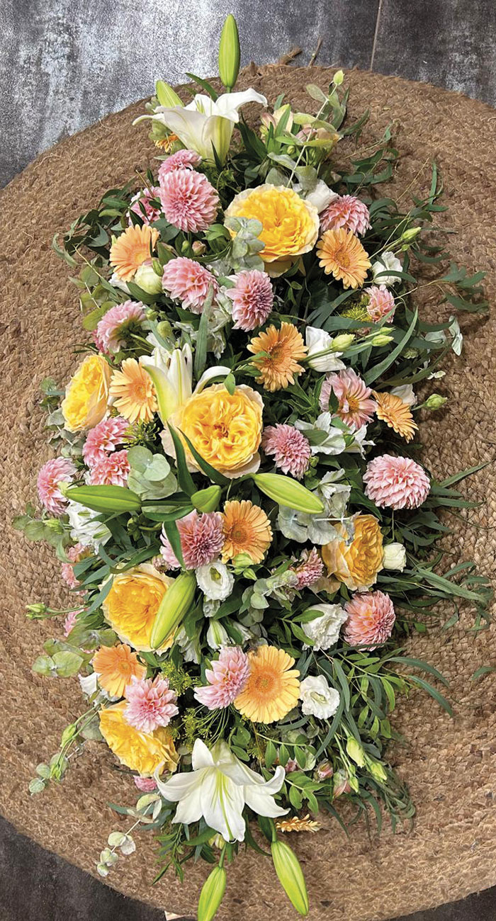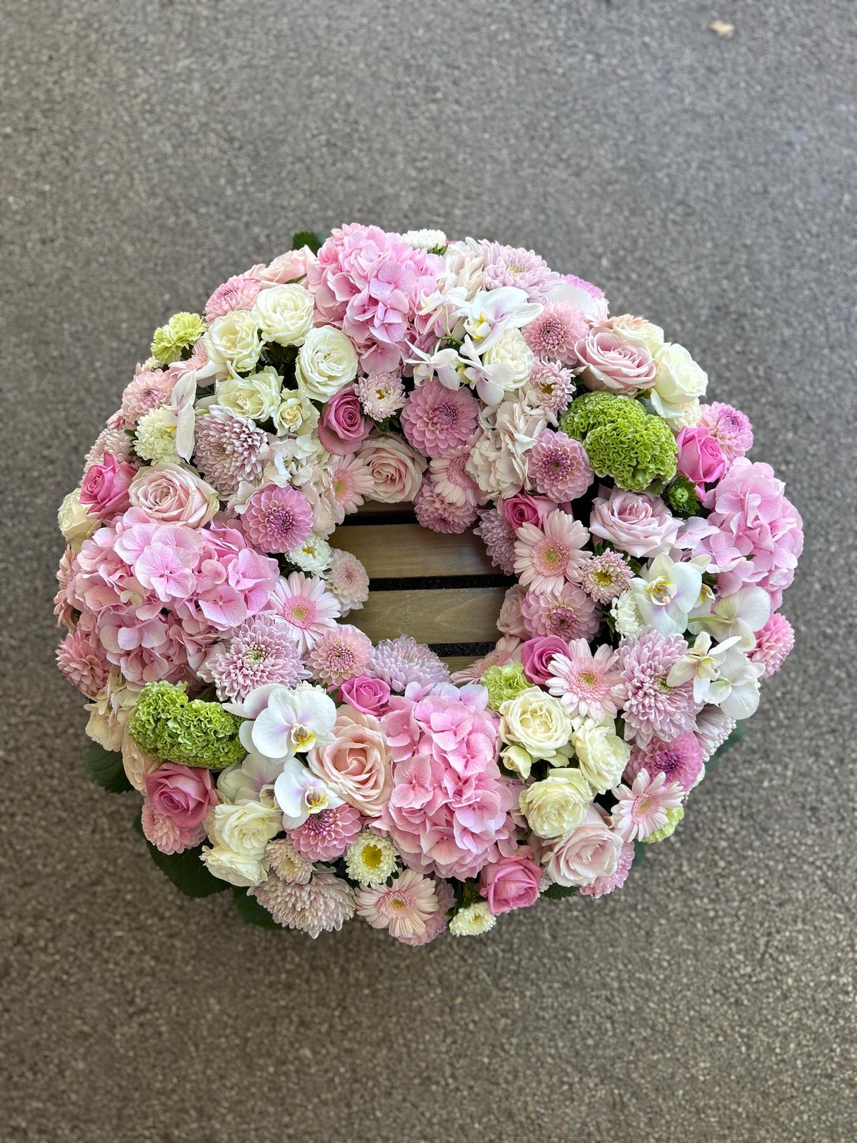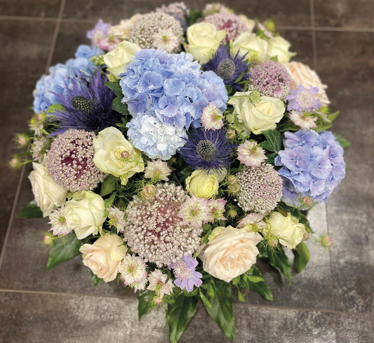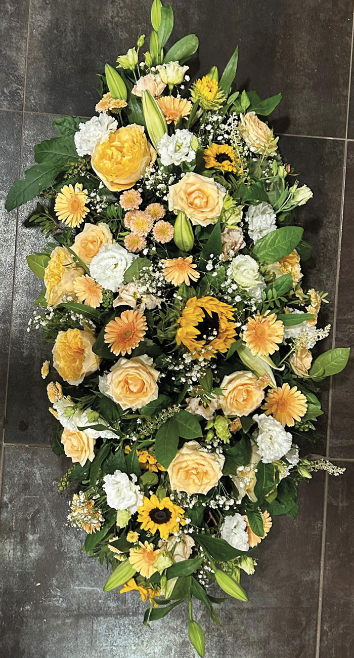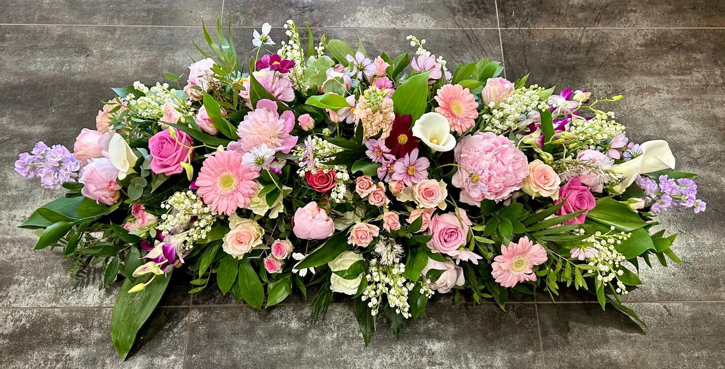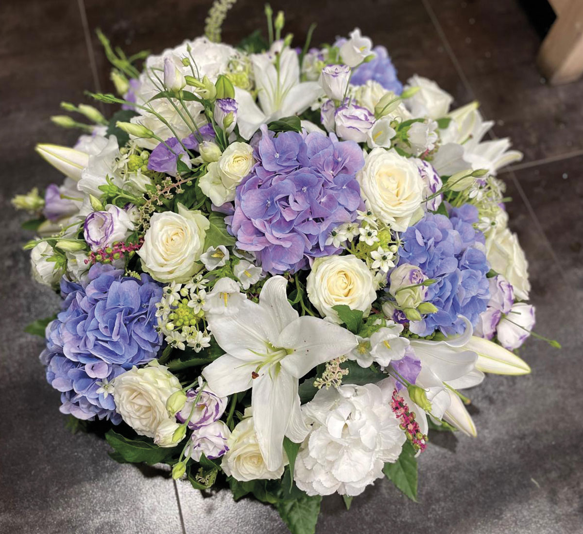 Nous vous proposons des pièces florales adaptées à ce moment particulier : cœurs, coussins, raquettes, couronnes, grandes pièces… 🕊